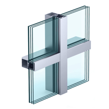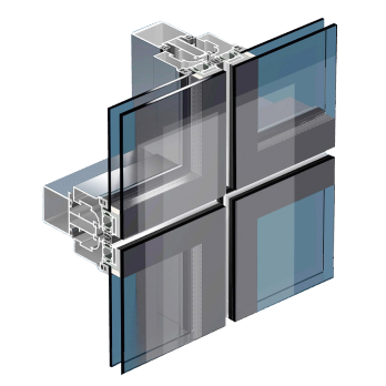 Полуструктурное остекление. Метод сочетает в себе надежность системы стойко-ригельного типа и изящный вид структурного остекления. Стекла фиксируются к профилям узкими штапиками, что минимально нарушает гладкость поверхности стекла. Этот способ позволяет использовать крупные стеклопакеты и создавать открывающиеся элементы.