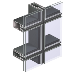 Это сочетание прочности стоечно-ригельных систем и презентабельности структурного остекления. В данном случае соединение стекла или стеклопакета с несущим профилем осуществляется тонкими прижимными штапиками, окантовывающими стекло по всему периметру и минимально перекрывающими его внешнюю поверхность. В отличие от структурной, такая система позволяет использовать большие по площади стеклопакеты и интегрировать в фасад открывающиеся элементы.
